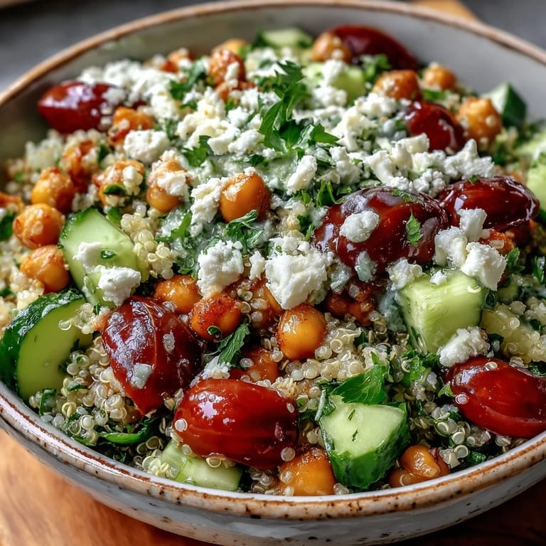 Save Indulge in a vibrant, protein-packed culinary experience with this High Protein Quinoa & Chickpea Salad. Featuring fluffy quinoa, fresh Mediterranean-inspired vegetables, creamy feta, and hearty chickpeas, this dish is a powerhouse of nutrition. Whether you are looking for a quick, healthy lunch or a colorful addition to your next gathering, this salad delivers on both flavor and texture.