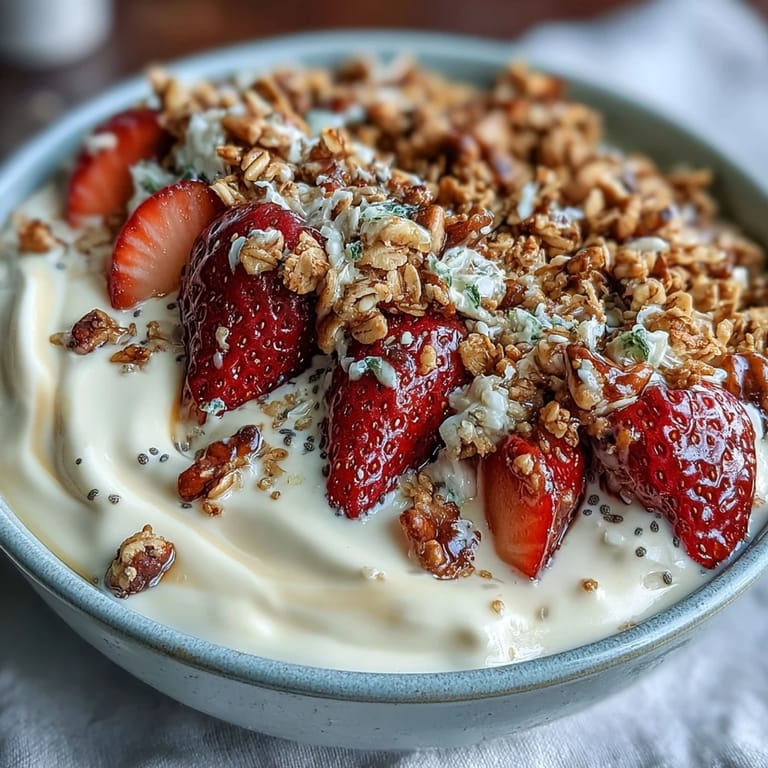 Save This recipe is versatile and inviting, offering a fresh, fruity breakfast that’s both satisfying and packed with energy. The natural sweetness of strawberries balances perfectly with the subtle vanilla and honey notes, while the granola topping adds an irresistible crunch.