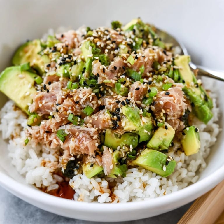 Save Last spring, I threw this bowl together on a Tuesday night when the fridge was nearly empty and I was too tired to think. I had leftover rice, a lonely can of tuna, and an avocado that was finally ripe. What started as a lazy dinner became something I crave at least once a week. The sesame oil hit the rice, the avocado melted into everything, and I realized I didn't need a complicated recipe to feel satisfied.